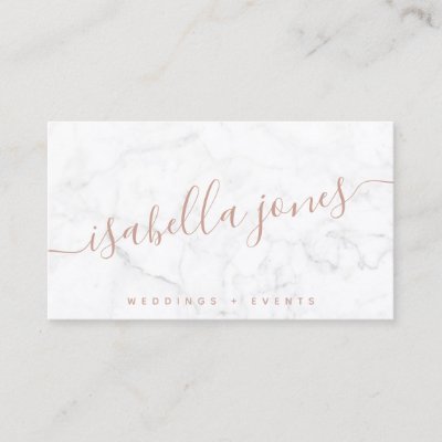 Minimalist white marble rose gold signature script myBusinessCards