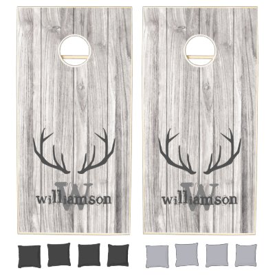 Rustic Printed Wood Deer Antlers Family Cornhole Set