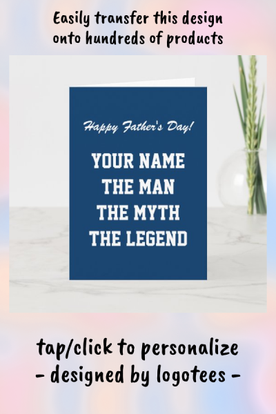 The man the myth the legend Father's day greeting card. Humorous card idea for dad daddy grandpa father etc. Personalizable with name. Funny and cute cards for men. Available in big oversized extra large size. Cool masculine typography. myFathersDay
